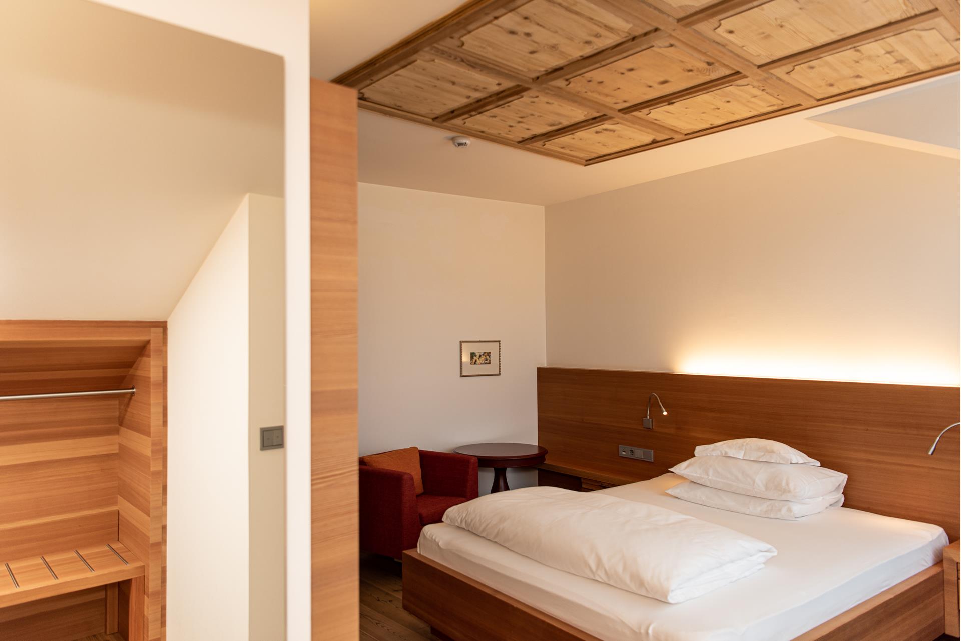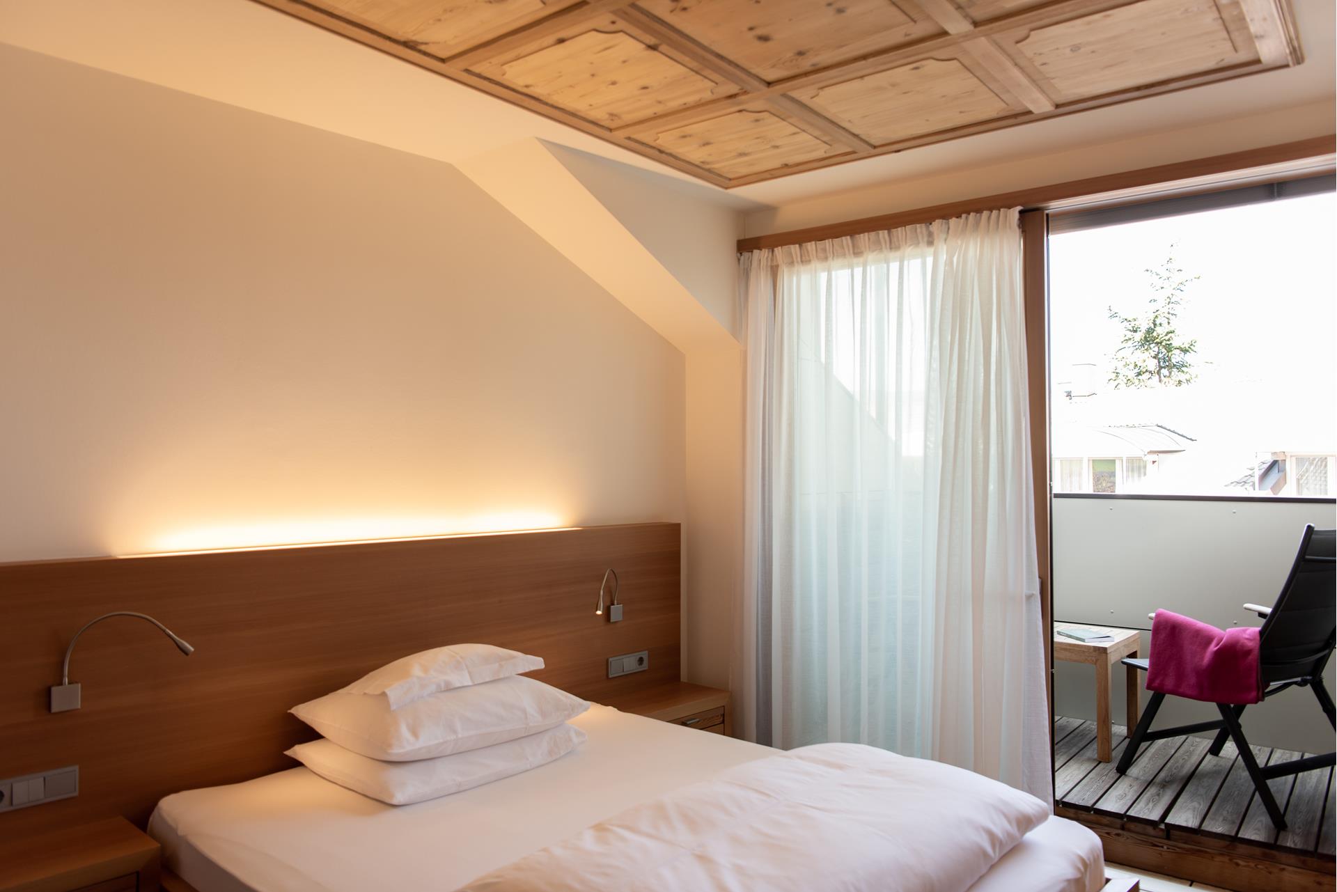 Die Zimmer im Dachgeschoß (3.Stock) verfügen über eine kleine Dachterrasse, die Zimmer im 2. Stock über einen Balkon. Die Ausstattung bietet Holzboden, 1,6 m breites Bett, Badezimmer mit WC und großer Dusche.